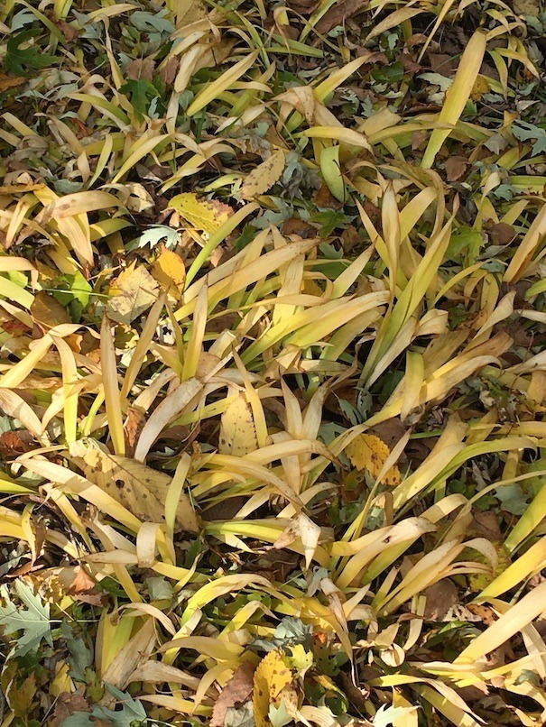 This is one of the edging plants I wrote about at the beginning of October. By the end of October, the overall color is yellow-green, which looks terrific next to the well-hydrated lawn.