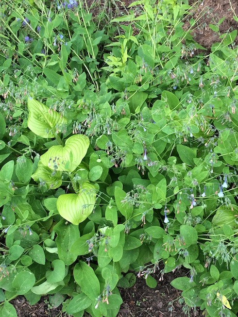 The bluebells have reached that awkward stage; the flowers are just about gone, but the plants haven’t keeled over. They are not at their most attractive, although from the street, they are back to being an amorphous blob of green instead of a haze of blue by the back fence. There are hostas and arrow-leaved asters among the bluebells, so that when the bluebells finally do keel over, they will be hidden. It’s a little hard to believe right now.